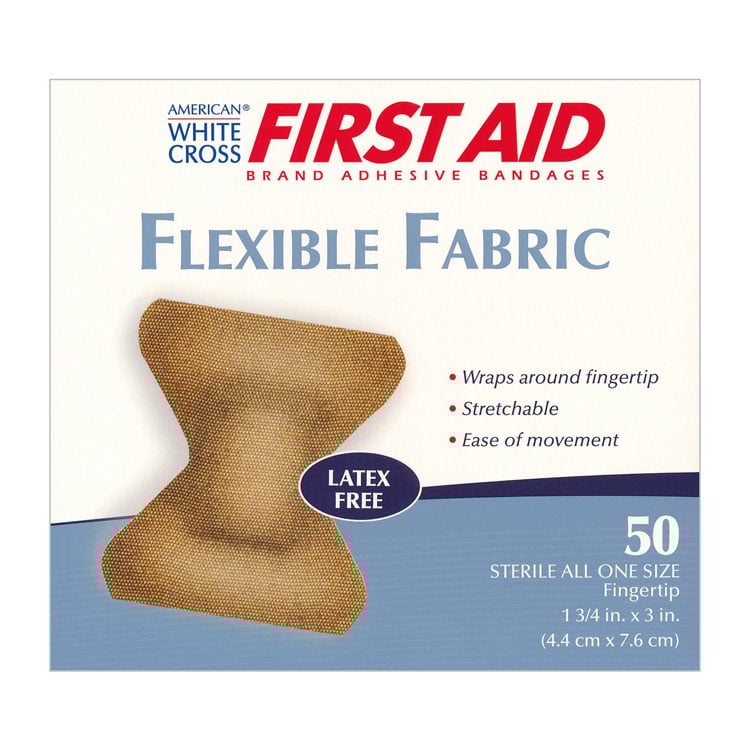 Large Finger Tip - 1 3/4” x 3” (50 Bandages per Box) These flexible fabric, adhesive bandages are latex free and perfect for any clinic or first aid cabinet.