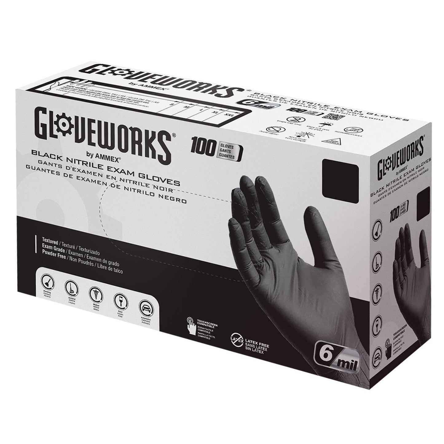 Gloveworks Black Nitrile Powder-Free Exam Gloves - X-Large (100-ct)