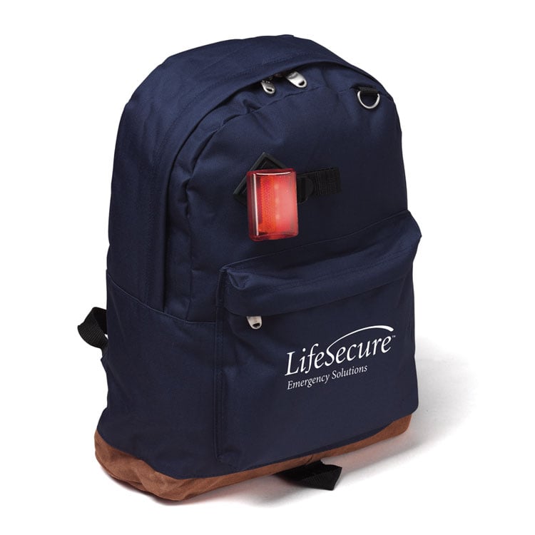 The Heavy–duty Backpack with LED Safety Signal is designed for storage and hands–free carrying of your LifeSecure™ emergency supplies. LED Safety Signal (2 AA batteries not included) ensures safe travel and easy identification. A response to a disaster may mean that you need to leave home, it is important that you store your emergency supplies in a bag or container that is easily transported.