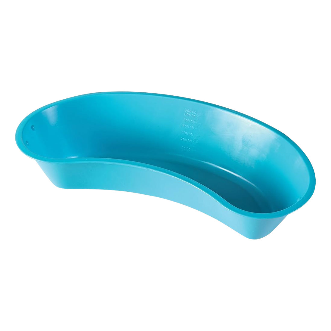 Polypropylene, kidney-shaped basin to collect or contain liquids. 10" size
