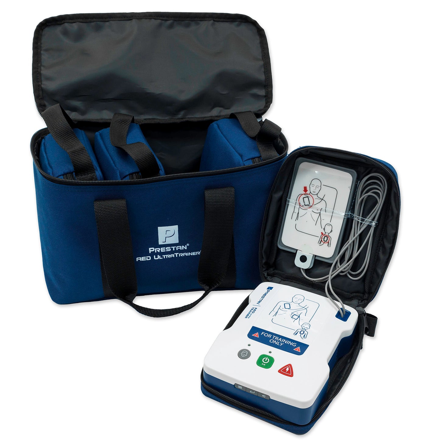With the PRESTAN AED UltraTrainer, pads are pre-connected and voice prompts are clear and calm. Customize classes with options to turn on/off compression metronome and/or the "give breaths" voice prompt. Run on 3 C batteries (not included).