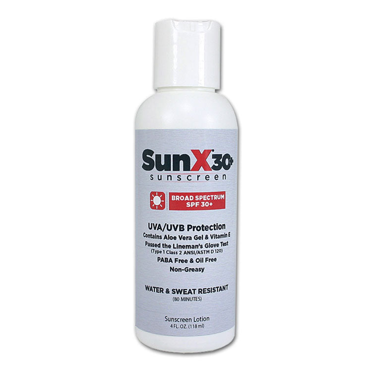 (4 oz Bottle) SunX SPF 30+ Broad Spectrum Sunscreen allows the most effective and economical skin protection for any environment.